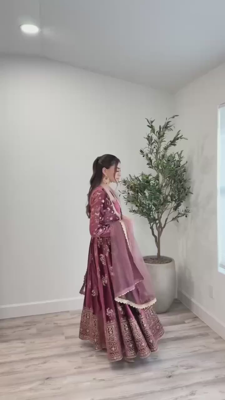 Classic Japan Satin Anarkali with Micro Cotton Lining and Flowing Net Dupatta