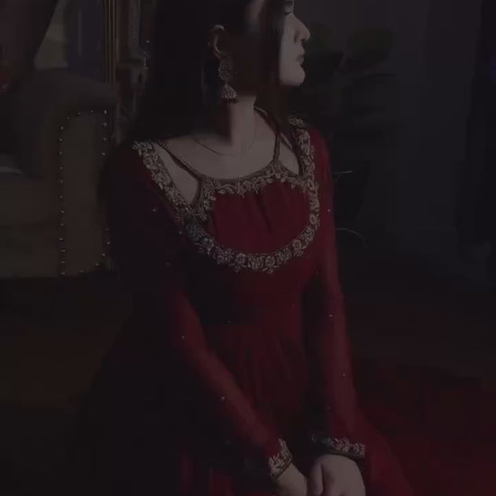 Fabric: Heavy Faux Georgette with Two-Layered Ruffles, Embroidery (5 mm Sequins) & Rivet Moti Work with Sleeves
