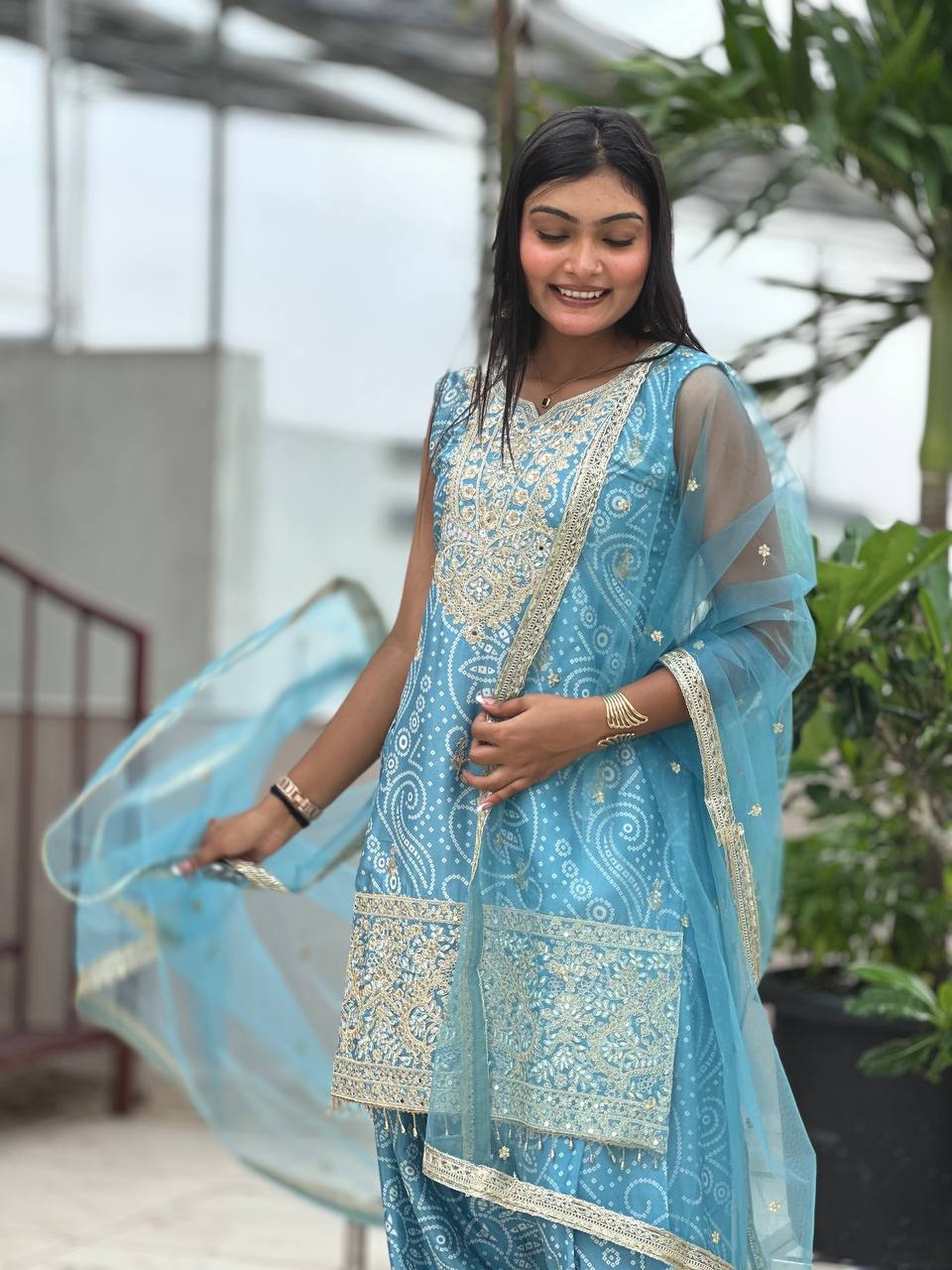 - Work: Beautiful embroidery and sequence coding work with digital print, stone handwork, and ready-made lace border