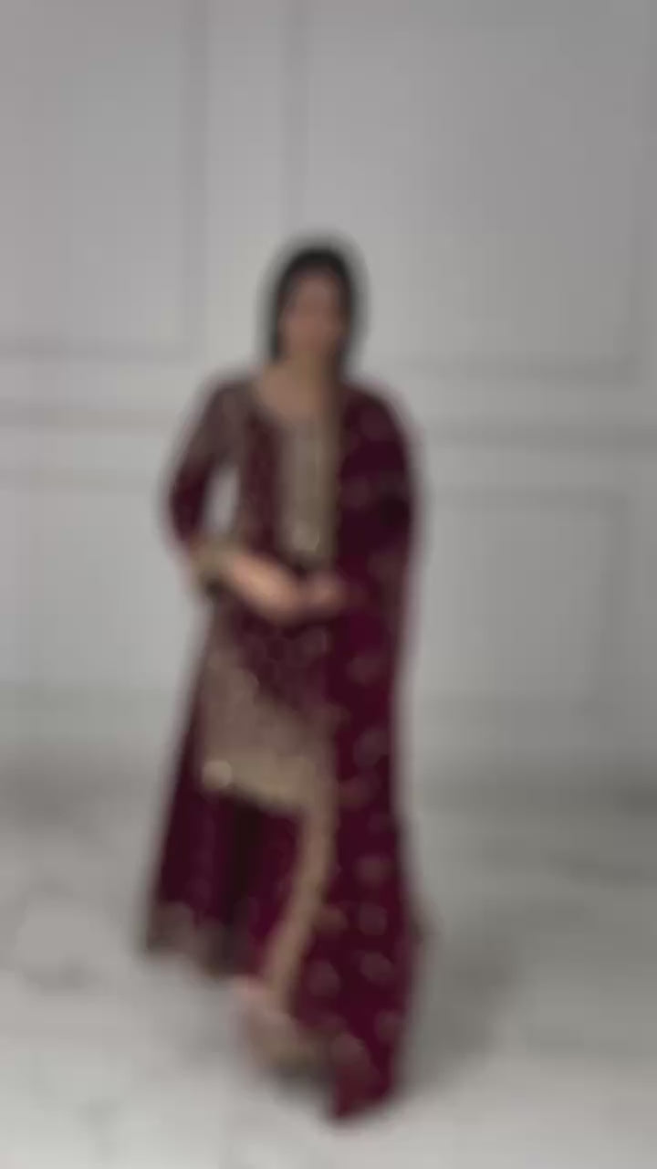 Elevate your party look with this designer georgette ensemble, featuring intricate front embroidery and elegant cut work. The heavy faux georgette top with full sleeves is lined with soft micro cotton for comfort and comes fully stitched in sizes M to XXL. Complementing the top, the matching plazzo showcases fancy embroidery and sequins, also fully lined and stitched for a perfect fit. A beautifully embroidered dupatta with sequins completes this sophisticated set, making it ideal for festive occasions and celebrations. Experience style and comfort combined in one stunning outfit.