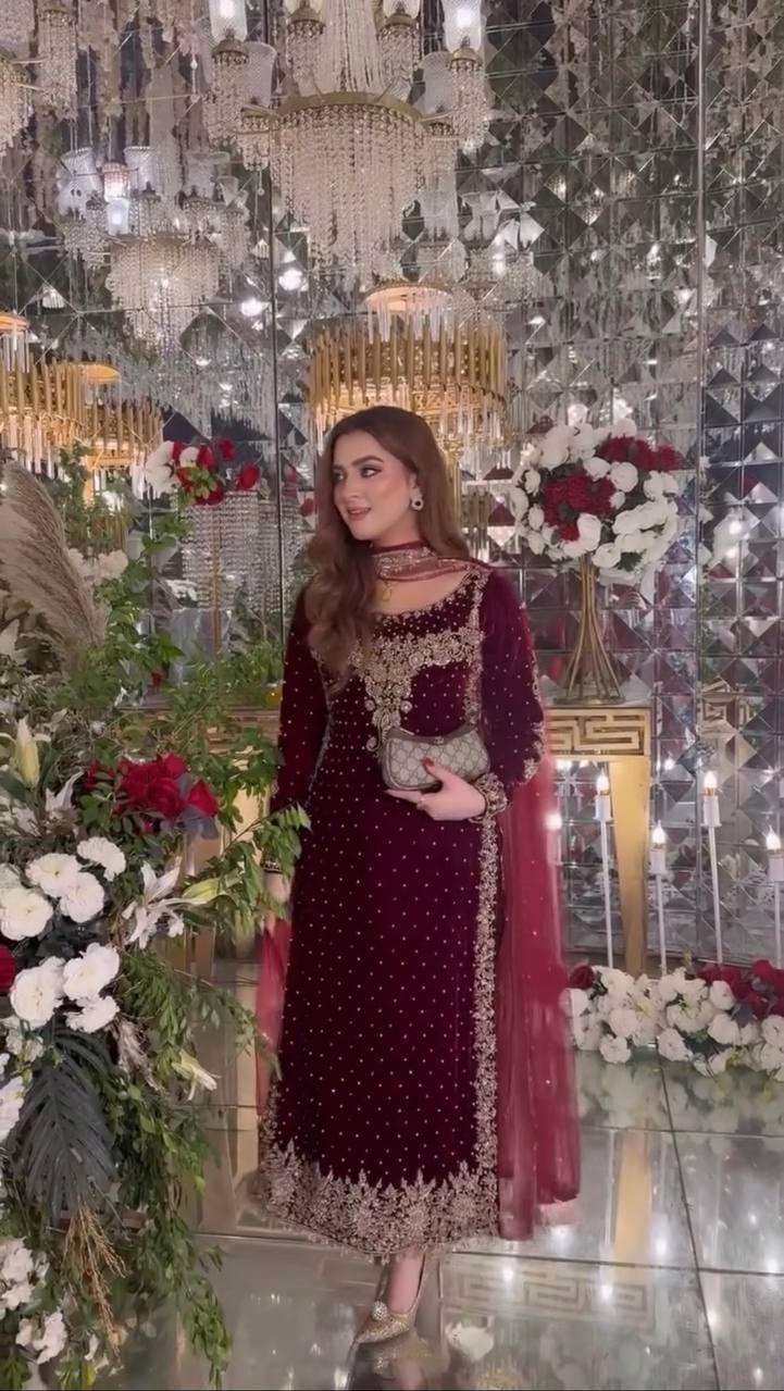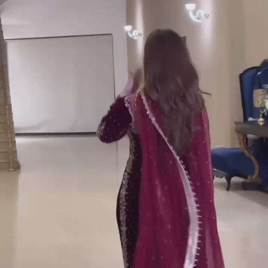 - Fabric: Pure Heavy Viscose Velvet with Heavy Embroidery Sequence Work and Neck Moti Work