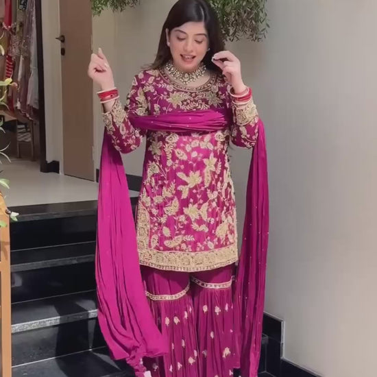 Elevate your party look with this Designer Faux Georgette Co-ord Set featuring intricate 5mm sequence embroidery. The fully stitched top, crafted from heavy faux georgette with a soft micro cotton lining, offers comfort and style in sizes M to XXL. Complemented by matching palazzo pants made with the same premium fabrics and a delicate bead-embellished dupatta, this ensemble delivers elegance and grace for any special occasion.