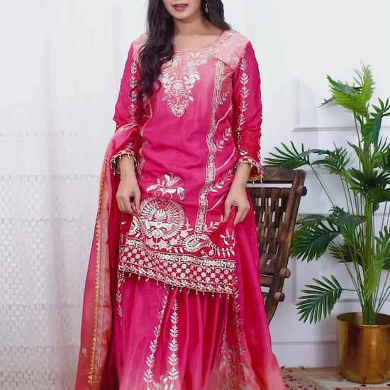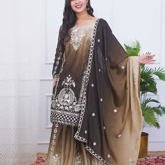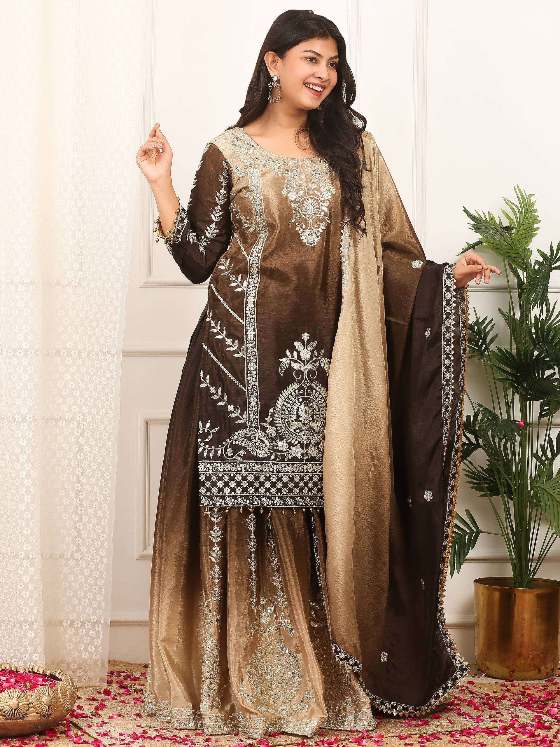 Exclusive Designer Collection Shaded Chinon Silk Top-Plazzo Set With Heavy Embroidery Detailing