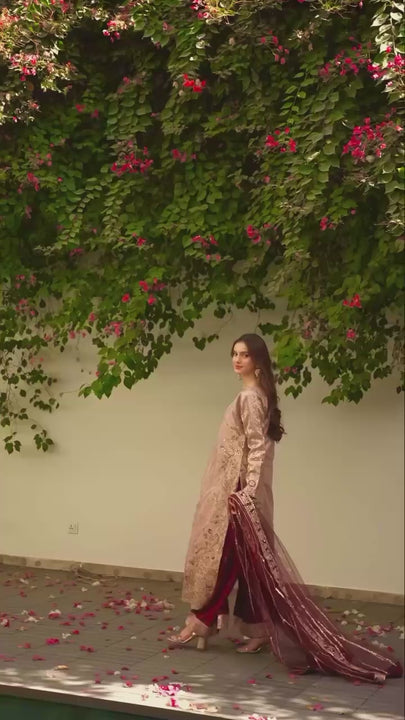- Work: Elegant embroidery and sequence work with riveted moti embellishment (Front side only)