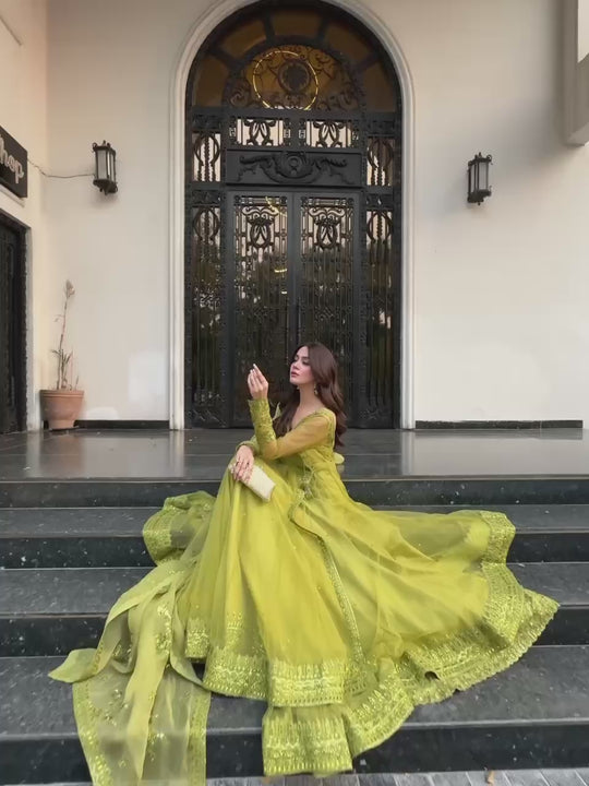 Indira-RT Butterfly Net Kediya Style Shrug With Lehenga Set Elevate your ethnic wardrobe with this stunning four-piece lehenga ensemble. The kediya-style shrug features delicate butterfly net fabric adorned with thread and sequin embellishments, paired with a comfortable micro inner for all-day wear. The coordinating micro cotton blouse offers a perfect fit with full stitching in sizes M to XXL. Drape yourself in the graceful 2.2-meter butterfly net dupata, intricately embellished to match. Complete the look with the beautifully crafted lehenga in butterfly net with micro cotton lining, featuring thread and sequin work and a convenient side zip closure. Available in multiple sizes, this exquisite set brings traditional charm with contemporary comfort, perfect for celebrations and special occasions.