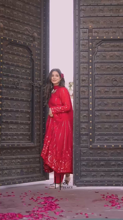 Elevate your ethnic wardrobe with the Isha-TD Faux Georgette Anarkali Embroidered Suit Set, a masterpiece of traditional craftsmanship. This stunning three-piece ensemble features an intricately embroidered faux georgette kurta with graceful 3.40-4.0 meter flare, perfectly proportioned necklines, and full sleeves for timeless elegance. The kurta is fully lined with soft micro cotton for comfort and durability, reinforced with canvas patta stitching for a structured silhouette. Paired with a coordinating micro cotton pant and a flowing 2.30-meter faux georgette dupatta adorned with delicate lace borders, this set is ideal for celebrations, festivals, and special occasions. Available in sizes XS to 3XL, it combines authentic design with modern comfort for the discerning woman.
