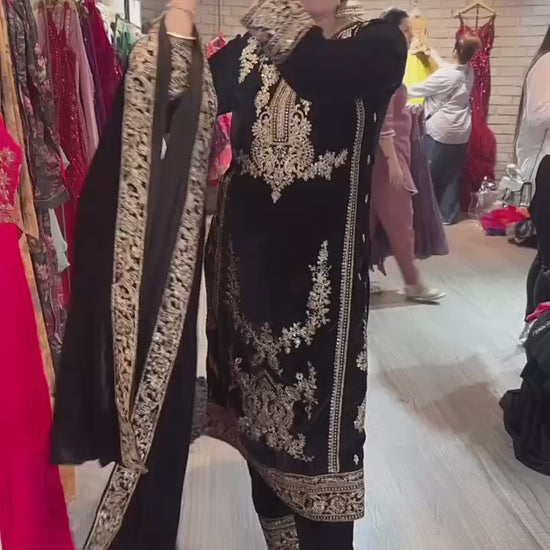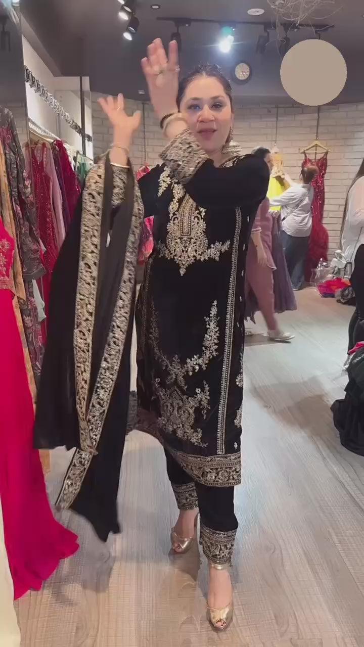 - Fabric: Pure Heavy Viscose Velvet with Heavy Embroidery and Coding Sequence Work