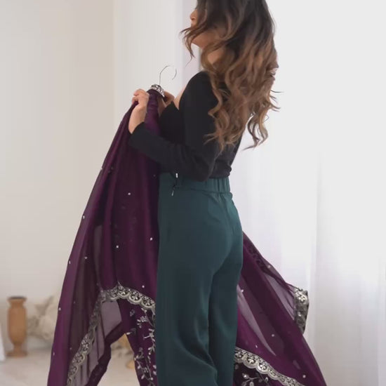 - Fabric: Heavy Faux Georgette with Embroidery Sequence Work and Full Flair
