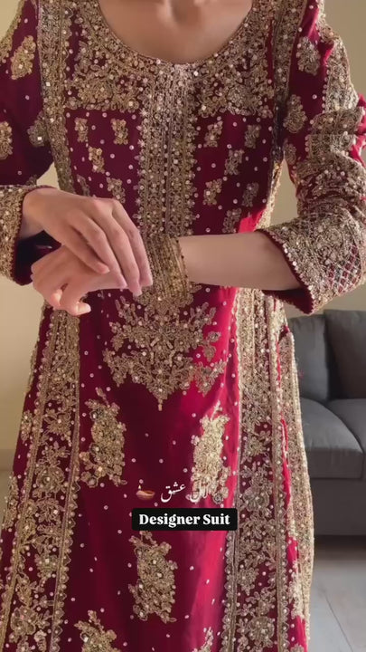 - Work: Fancy heavy embroidery with sequins and riveted moti work (front side only)
