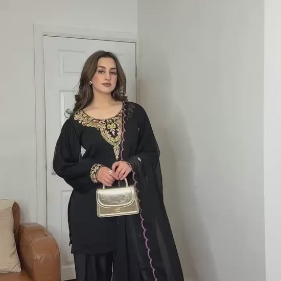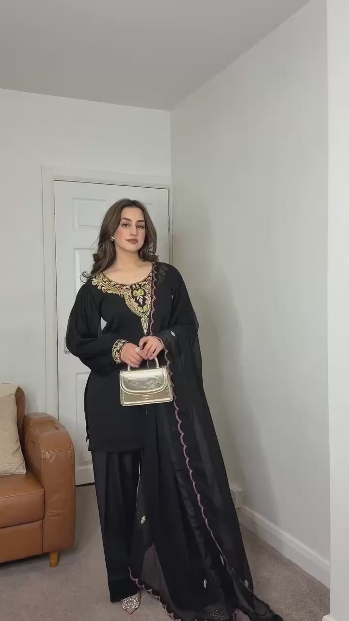 - Fabric: Heavy Faux Georgette with 5mm Embroidery Sequence Work and Fancy Sleeves